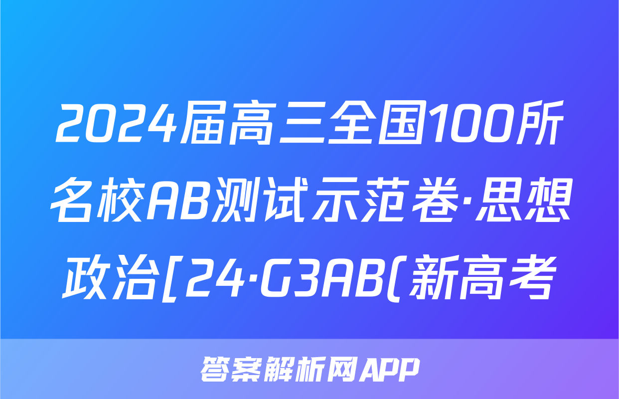 2024届高三全国100所名校AB测试示范卷·思想政治[24·G3AB(新高考)·思想政治-R-必考-HUN]八试题正在持续更新,目前2024届周测卷答案网为大家整理了相关试题及答案,供大家查缺补漏,高效提升成绩。