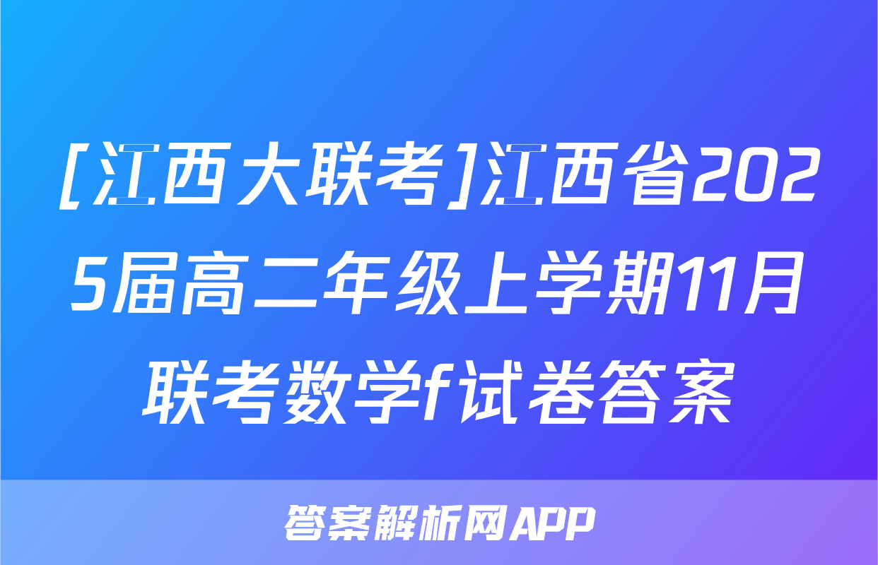 [江西大联考]江西省2025届高二年级上学期11月联考数学f试卷答案正在持续更新,目前2024届周测卷答案网为大家整理了相关试题及答案,供大家查缺补漏,高效提升成绩。