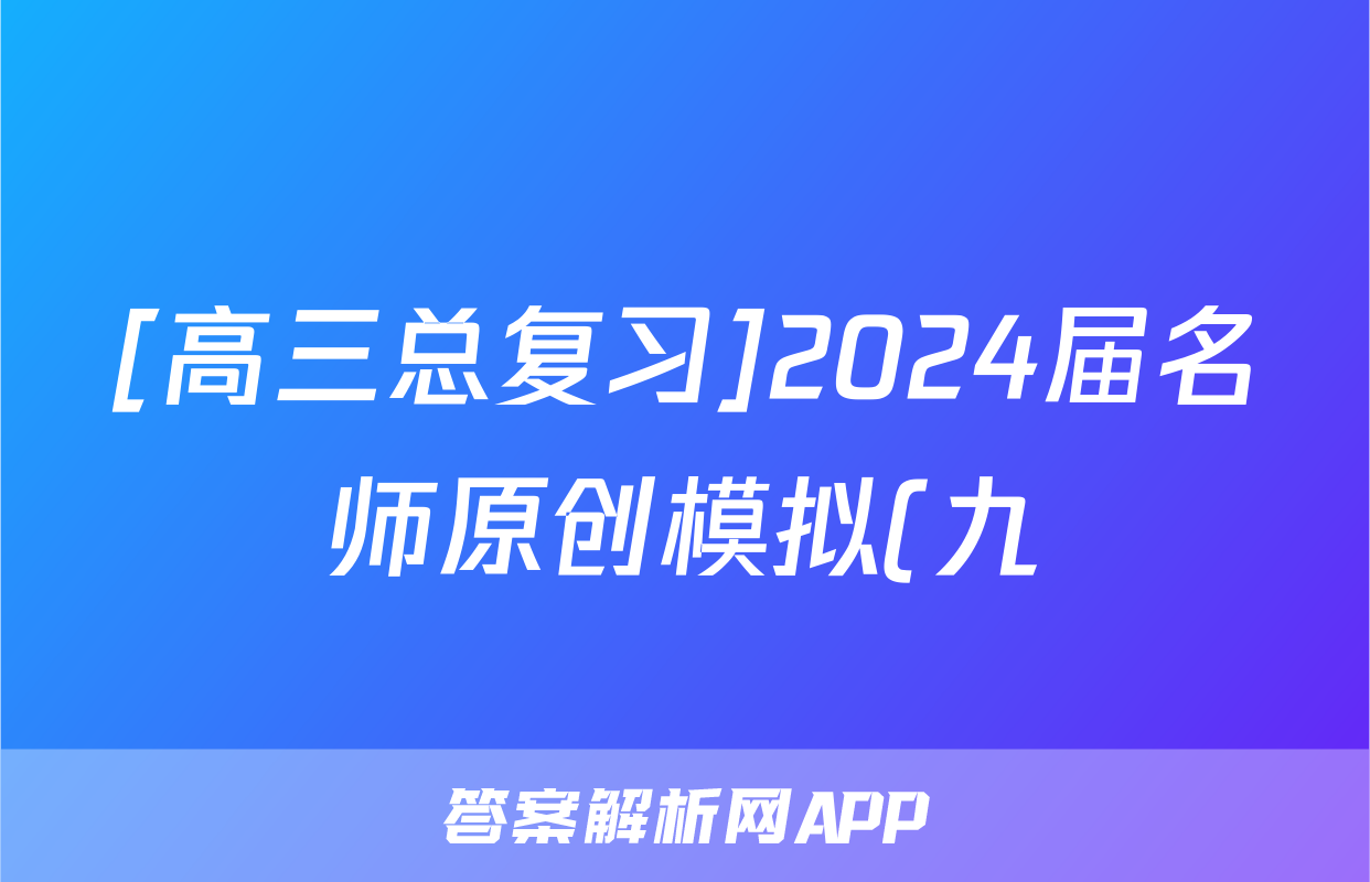 1、[高三总复]2024届名师原创模拟(九)9化学(S4)答案