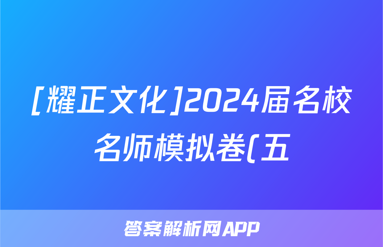 [耀正文化]2024届名校名师模拟卷(五)5理科综合试题正在持续更新,目前2024届周测卷答案网为大家整理了相关试题及答案,供大家查缺补漏,高效提升成绩。