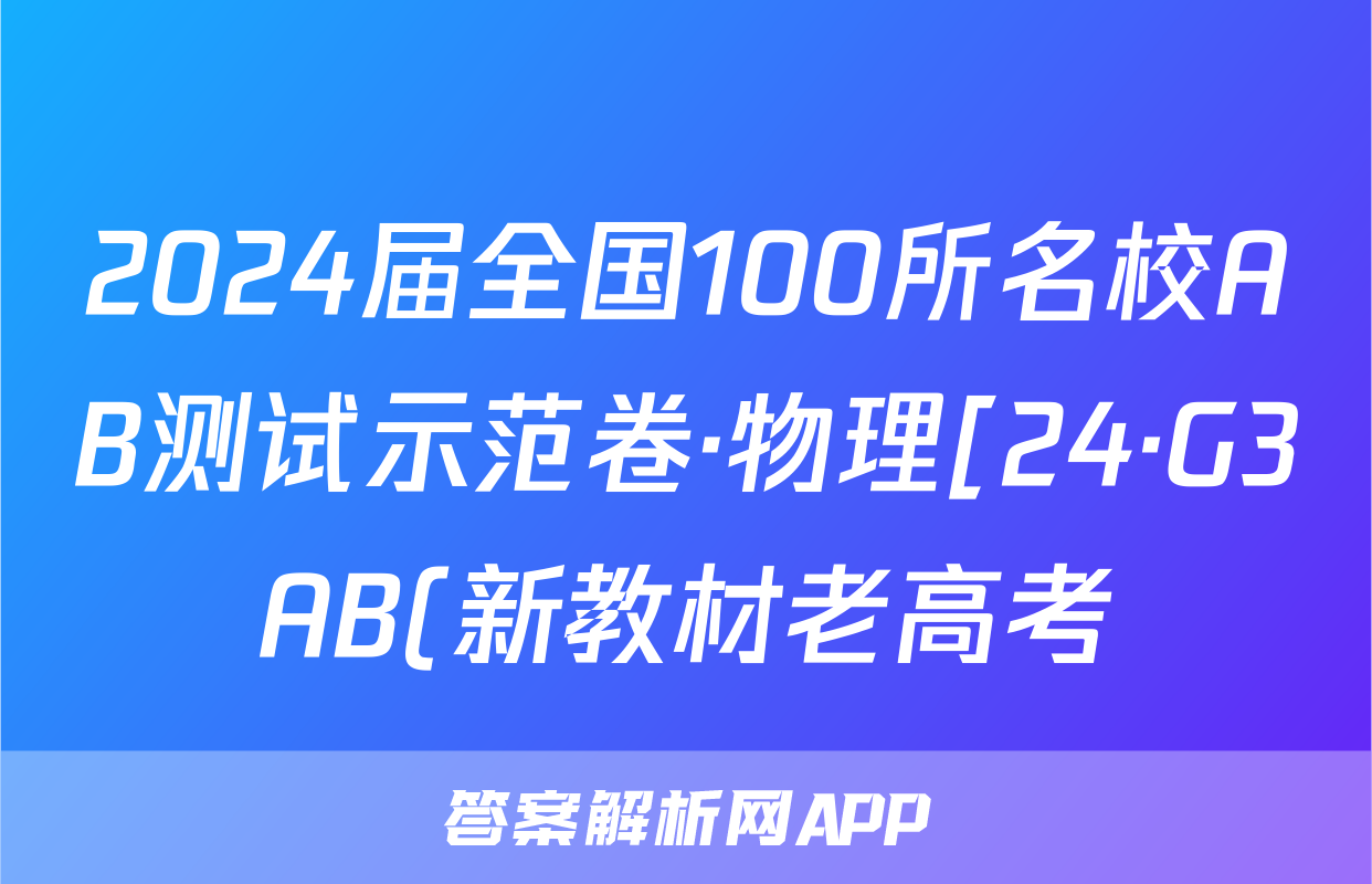 2024届全国100所名校AB测试示范卷·物理[24·G3AB(新教材老高考)·物理-LKB-必考-HUN]四试题正在持续更新,目前2024届周测卷答案网为大家整理了相关试题及答案,供大家查缺补漏,高效提升成绩。