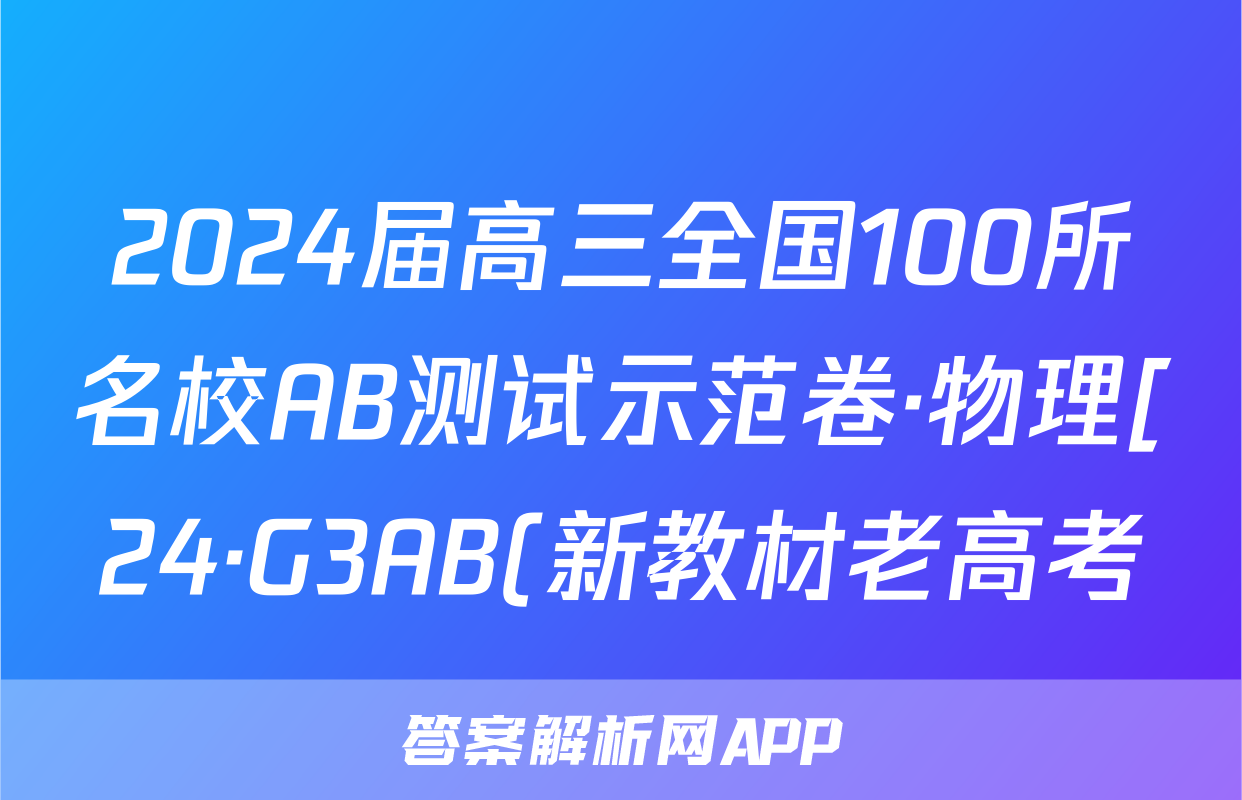 1、2024届全国100所名校AB测试示范卷·物理[24·G3AB(新教材老高考)·物理-LKB-必考-HUN]四试题