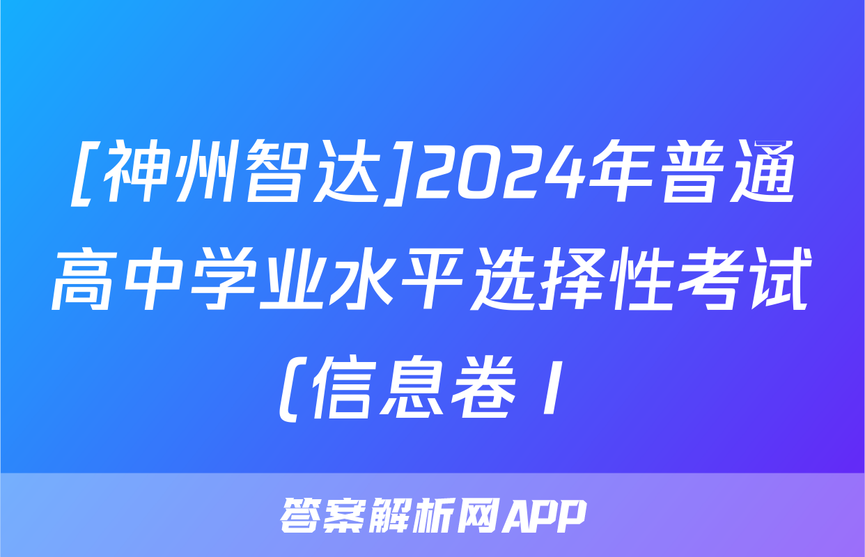 1、神州智达 2024年普通高中学业水选择性考试(信息卷Ⅰ)(三)3化学答案