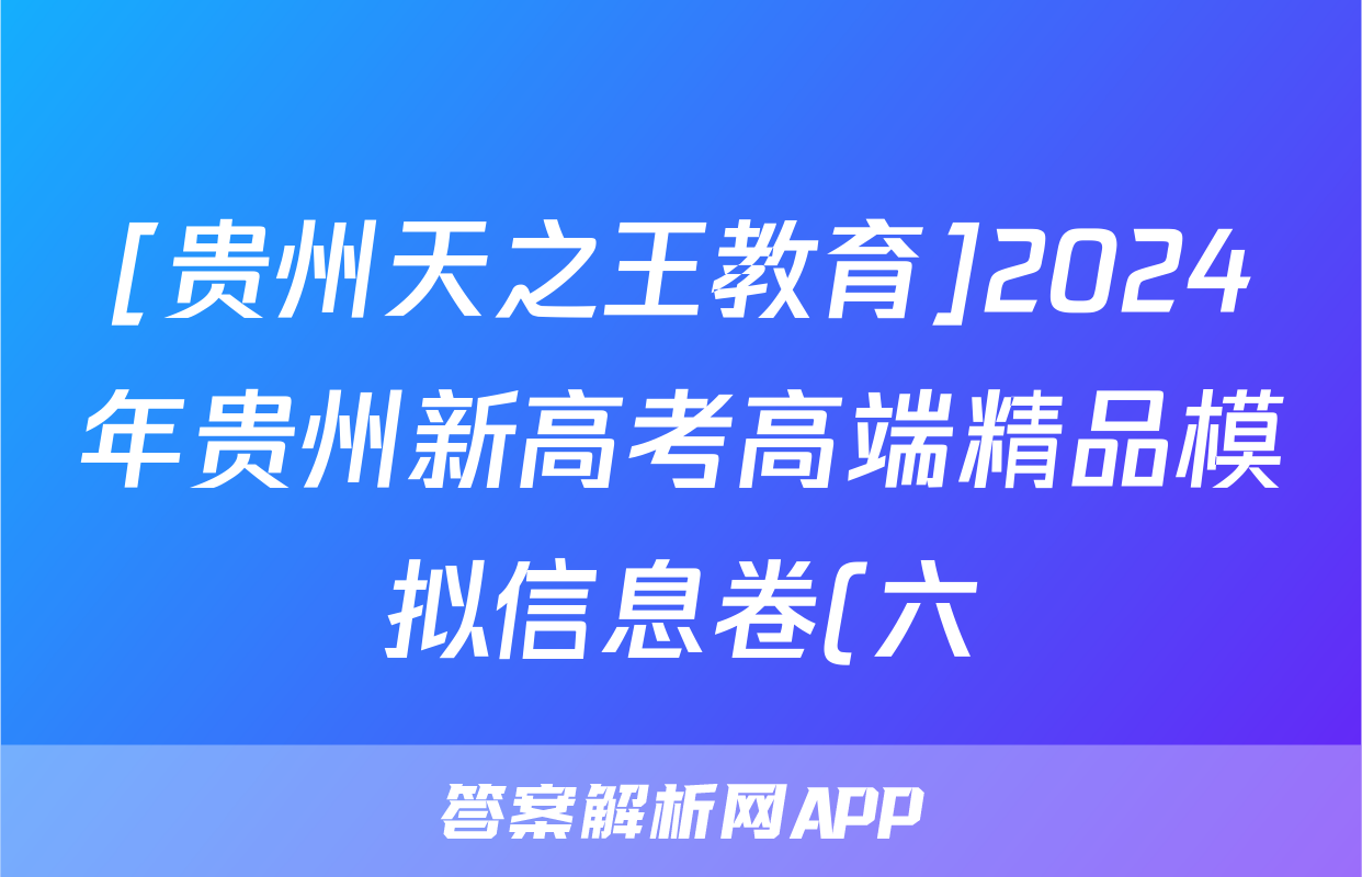 [贵州天之王教育]2024年贵州新高考高端精品模拟信息卷(六)6政治答案正在持续更新,目前2024届周测卷答案网为大家整理了相关试题及答案,供大家查缺补漏,高效提升成绩。