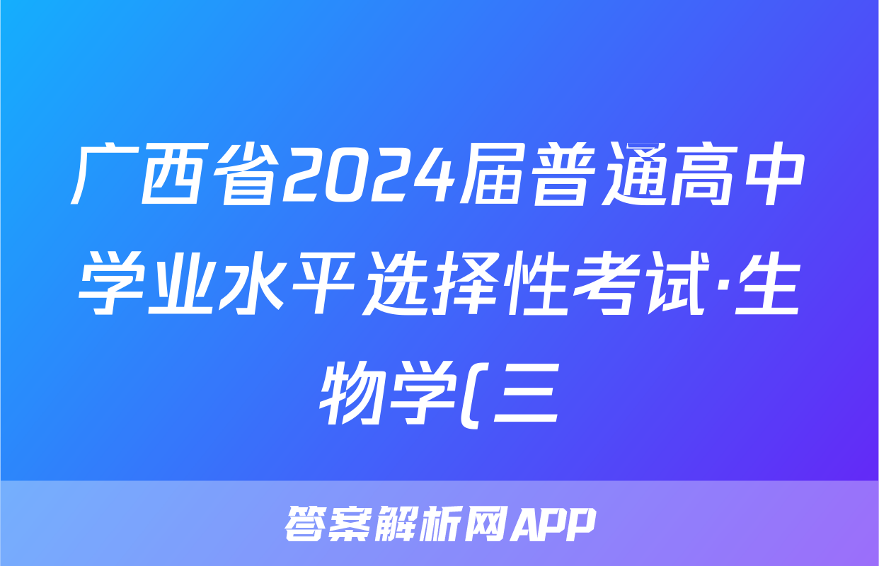 广西省2024届普通高中学业水平选择性考试·生物学(三)3[24·(新高考)ZX·MNJ·生物学·GX]试题正在持续更新,目前2024届周测卷答案网为大家整理了相关试题及答案,供大家查缺补漏,高效提升成绩。
