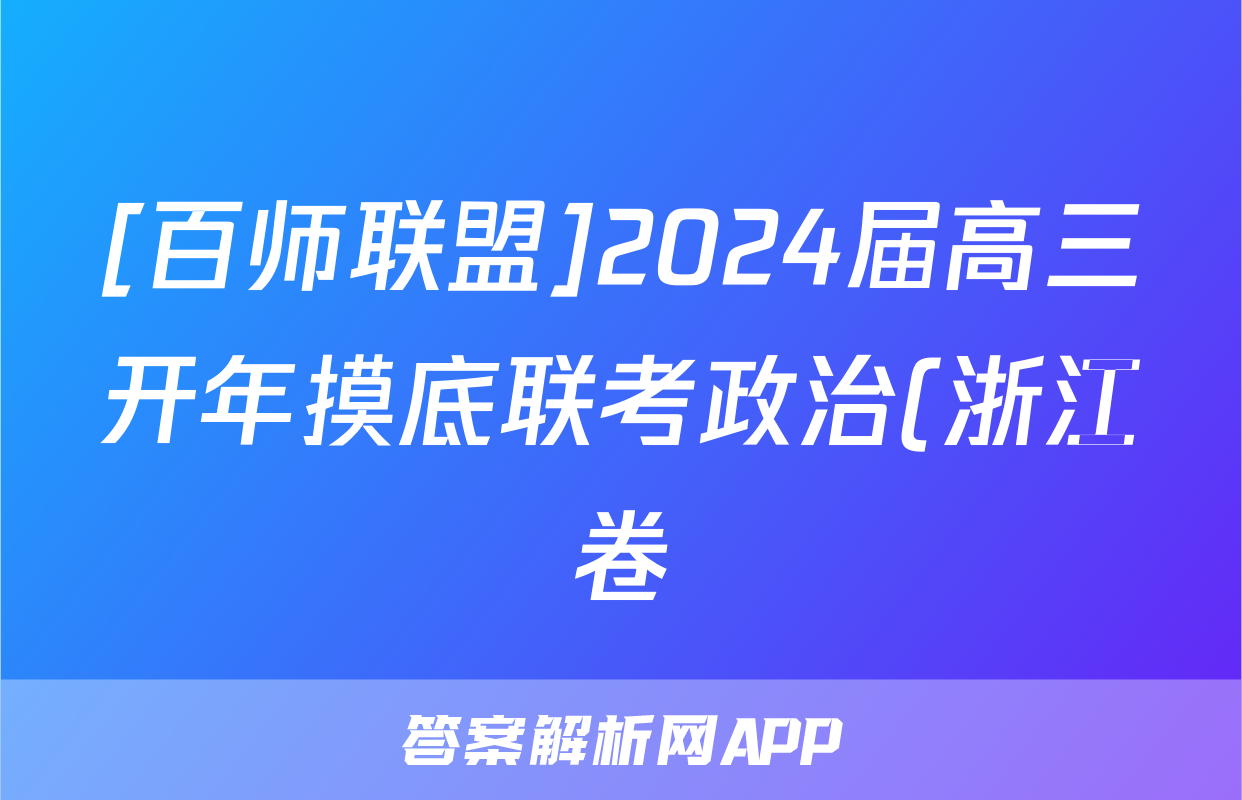 [百师联盟]2024届高三开年摸底联考政治(浙江卷)试题正在持续更新,目前2024届周测卷答案网为大家整理了相关试题及答案,供大家查缺补漏,高效提升成绩。