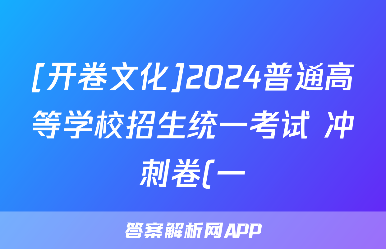 [开卷文化]2024普通高等学校招生统一考试 冲刺卷(一)1数学(HN)答案正在持续更新,目前2024届周测卷答案网为大家整理了相关试题及答案,供大家查缺补漏,高效提升成绩。