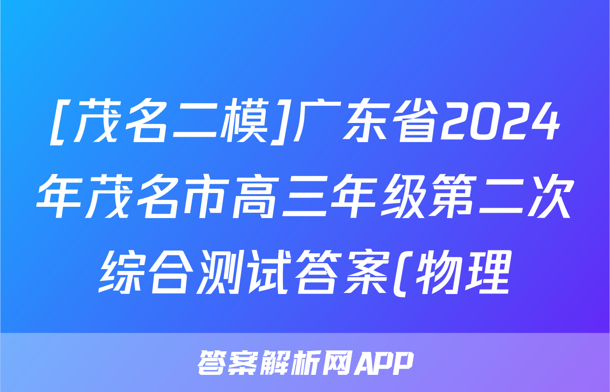 [茂名二模]广东省2024年茂名市高三年级第二次综合测试答案(物理)正在持续更新,目前2024届周测卷答案网为大家整理了相关试题及答案,供大家查缺补漏,高效提升成绩。