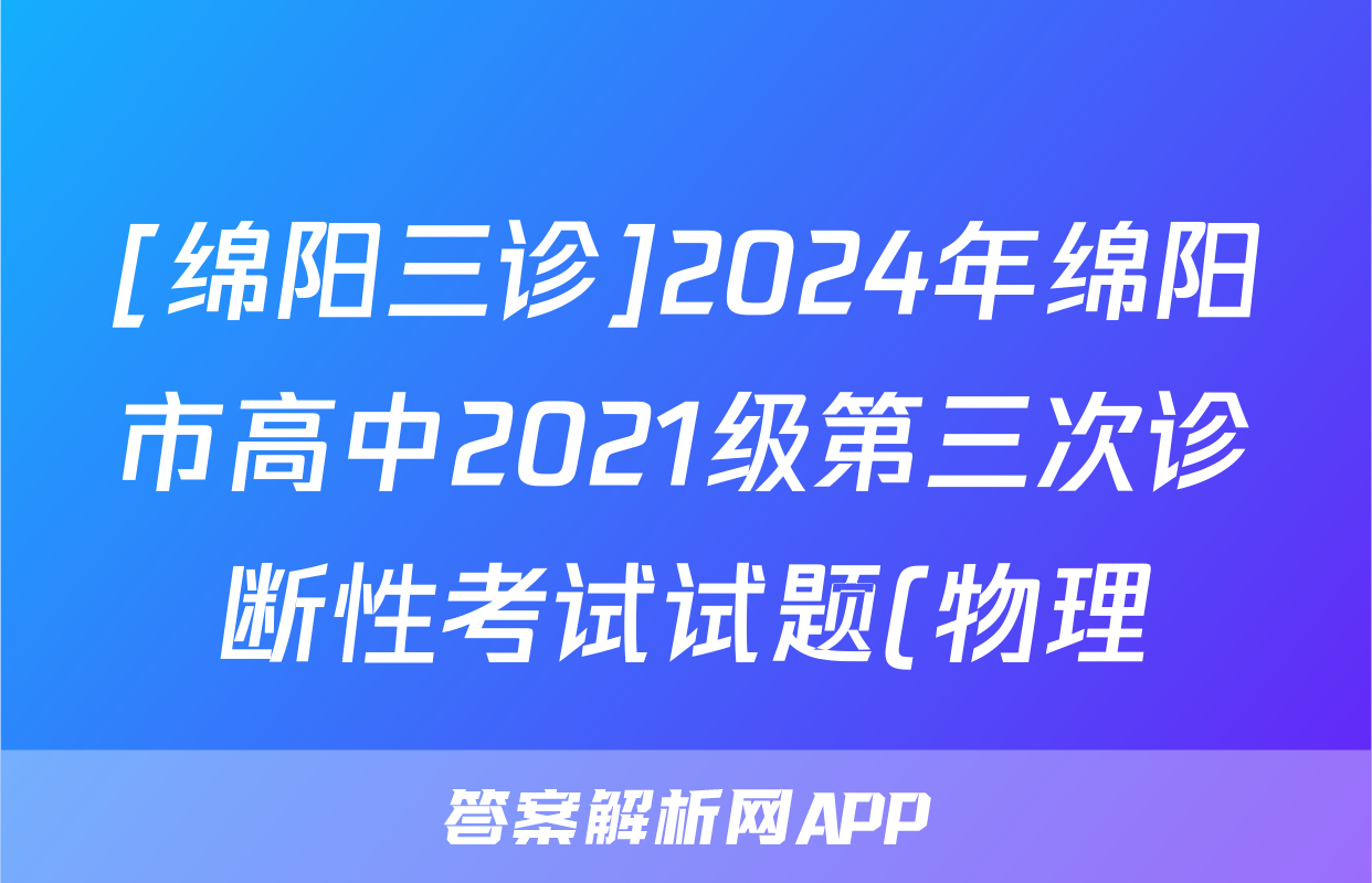 [绵阳三诊]2024年绵阳市高中2021级第三次诊断性考试试题(物理)正在持续更新,目前2024届周测卷答案网为大家整理了相关试题及答案,供大家查缺补漏,高效提升成绩。