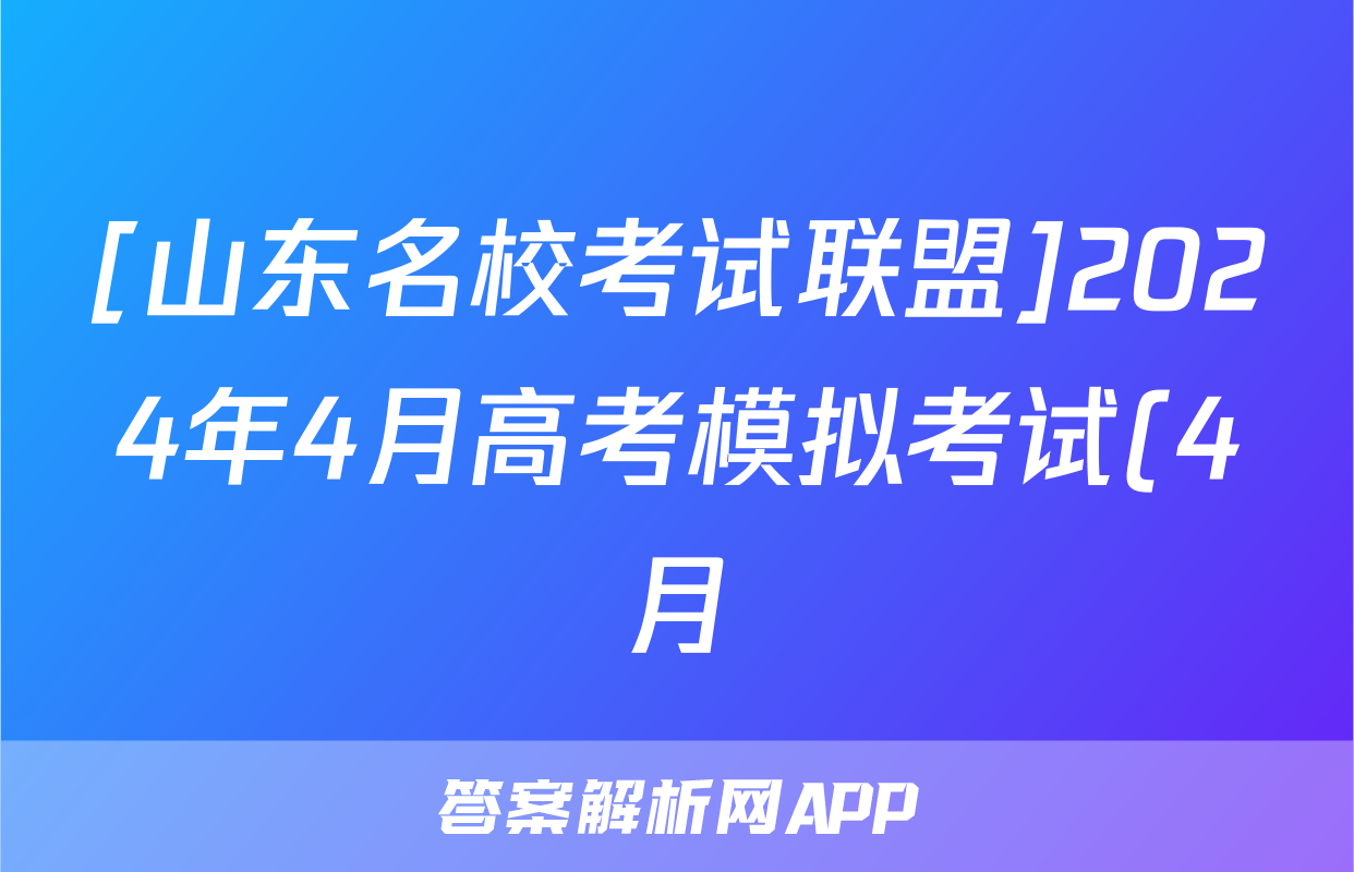 [山东名校考试联盟]2024年4月高考模拟考试(4月)试题(生物)正在持续更新,目前2024届周测卷答案网为大家整理了相关试题及答案,供大家查缺补漏,高效提升成绩。