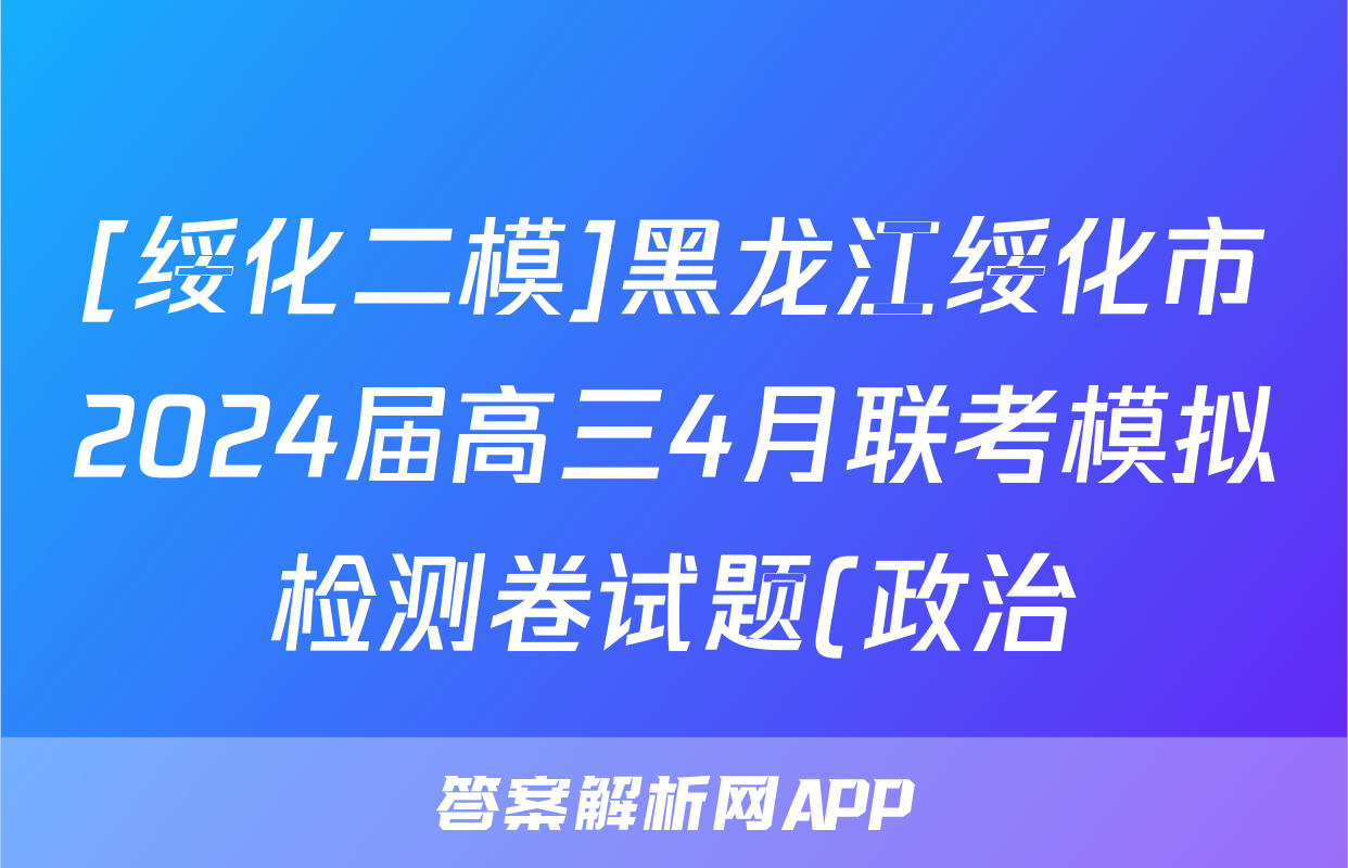 [绥化二模]黑龙江绥化市2024届高三4月联考模拟检测卷试题(政治)