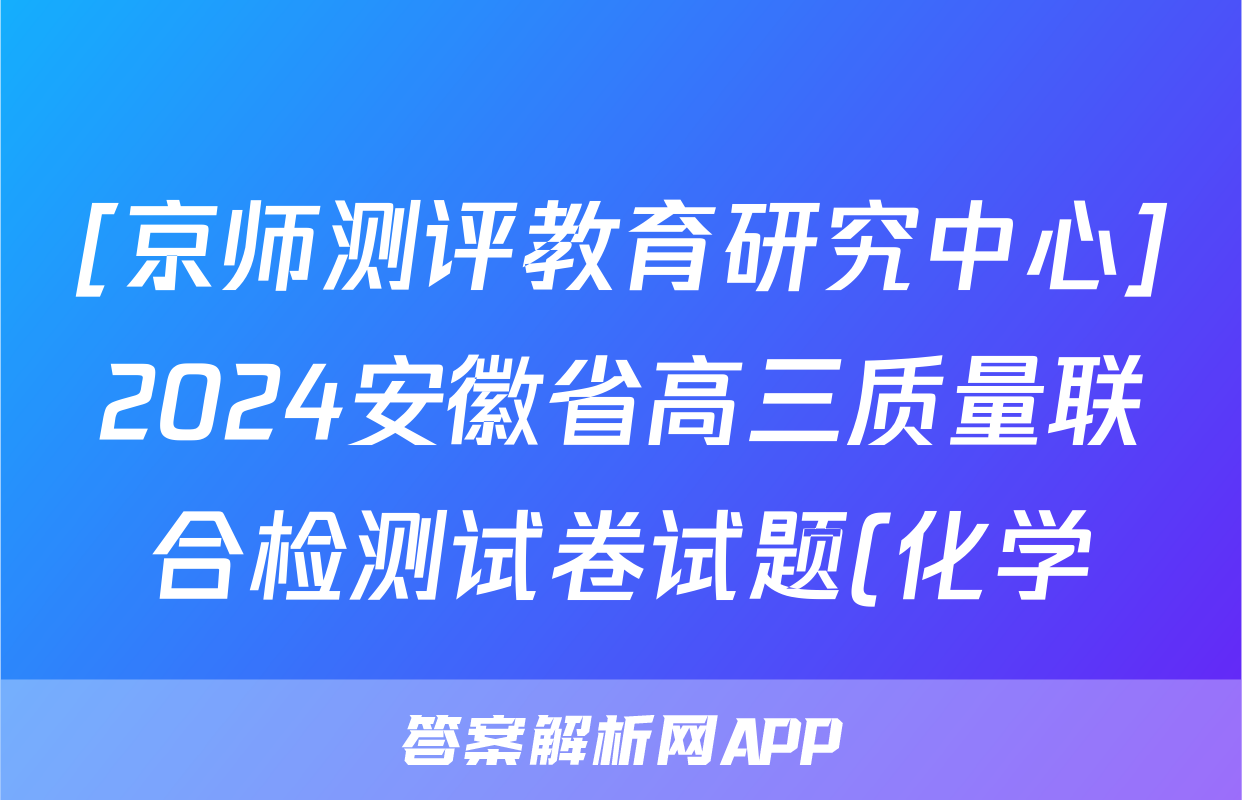 3、[京师测评教育研究中心]2024安徽省高三质量联合检测试卷答案(化学)