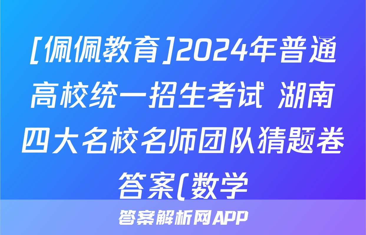 [佩佩教育]2024年普通高校统一招生考试 湖南四大名校名师团队猜题卷答案(数学)正在持续更新,目前2024届周测卷答案网为大家整理了相关试题及答案,供大家查缺补漏,高效提升成绩。
