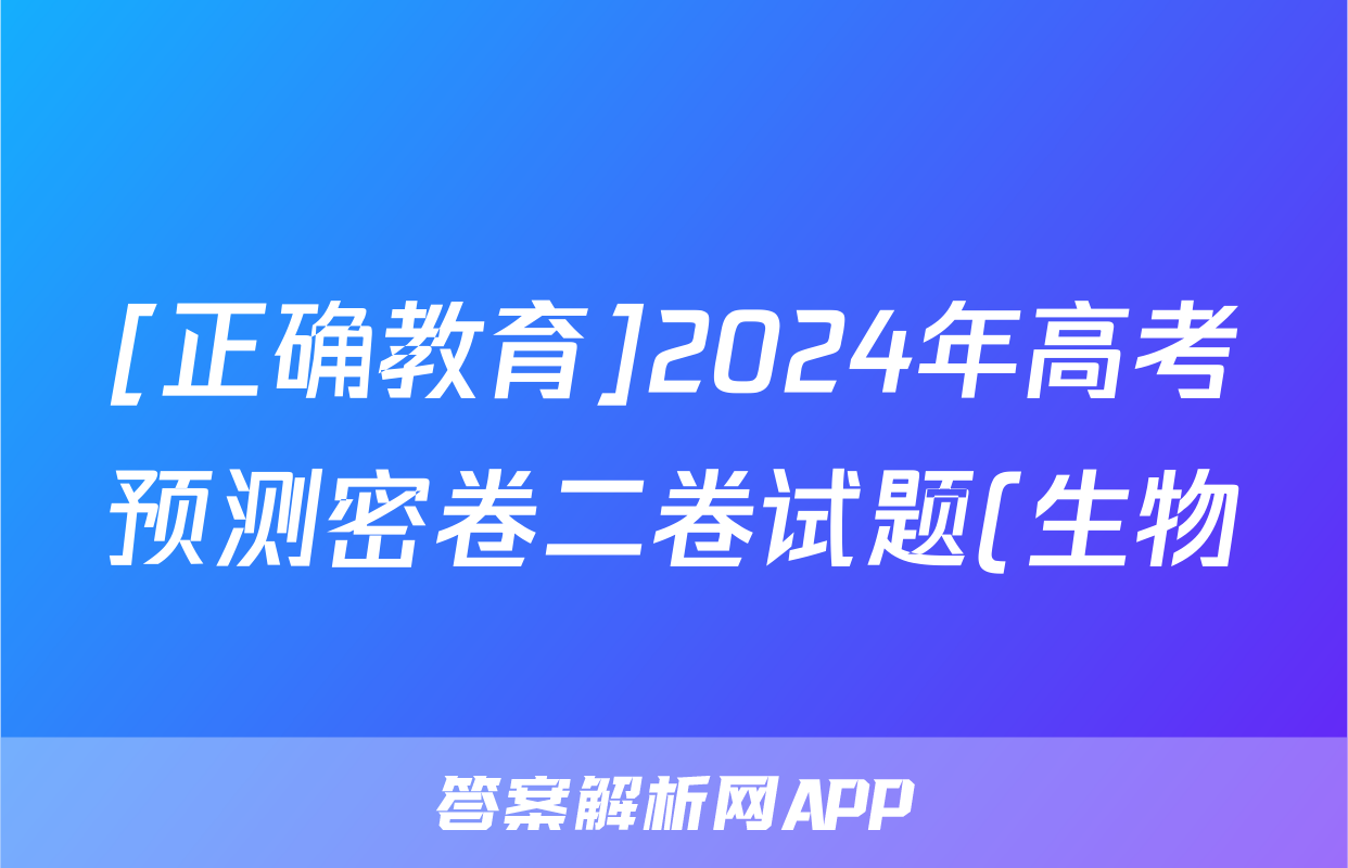 [正确教育]2024年高考预测密卷二卷试题(生物)正在持续更新,目前2024届周测卷答案网为大家整理了相关试题及答案,供大家查缺补漏,高效提升成绩。