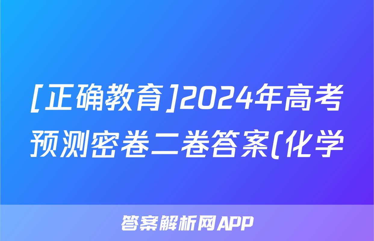 [正确教育]2024年高考预测密卷二卷答案(化学)正在持续更新,目前2024届周测卷答案网为大家整理了相关试题及答案,供大家查缺补漏,高效提升成绩。