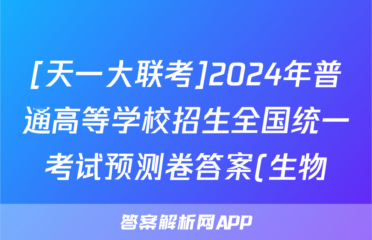 [天一大联考]2024年普通高等学校招生全国统一考试预测卷答案(生物)正在持续更新,目前2024届周测卷答案网为大家整理了相关试题及答案,供大家查缺补漏,高效提升成绩。