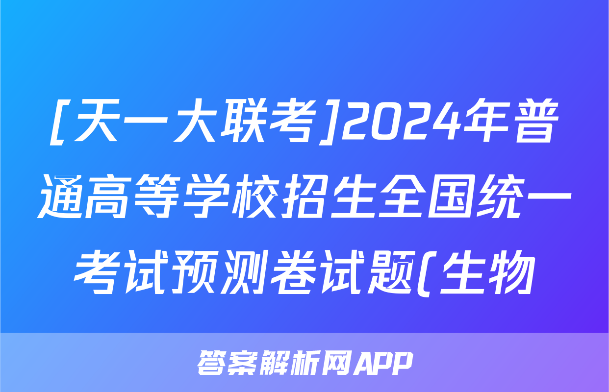 [天一大联考]2024年普通高等学校招生全国统一考试预测卷试题(生物)正在持续更新,目前2024届周测卷答案网为大家整理了相关试题及答案,供大家查缺补漏,高效提升成绩。