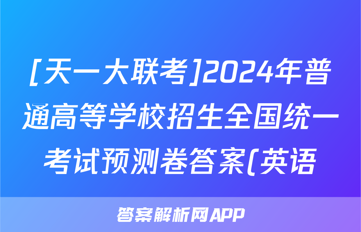 [天一大联考]2024年普通高等学校招生全国统一考试预测卷答案(英语)正在持续更新,目前2024届周测卷答案网为大家整理了相关试题及答案,供大家查缺补漏,高效提升成绩。