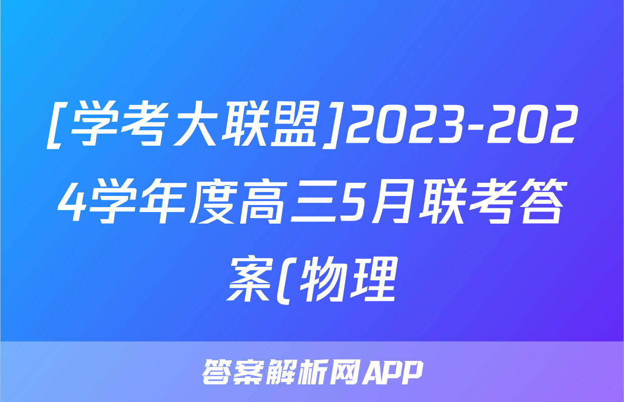 [学考大联盟]2023-2024学年度高三5月联考答案(物理)正在持续更新,目前2024届周测卷答案网为大家整理了相关试题及答案,供大家查缺补漏,高效提升成绩。