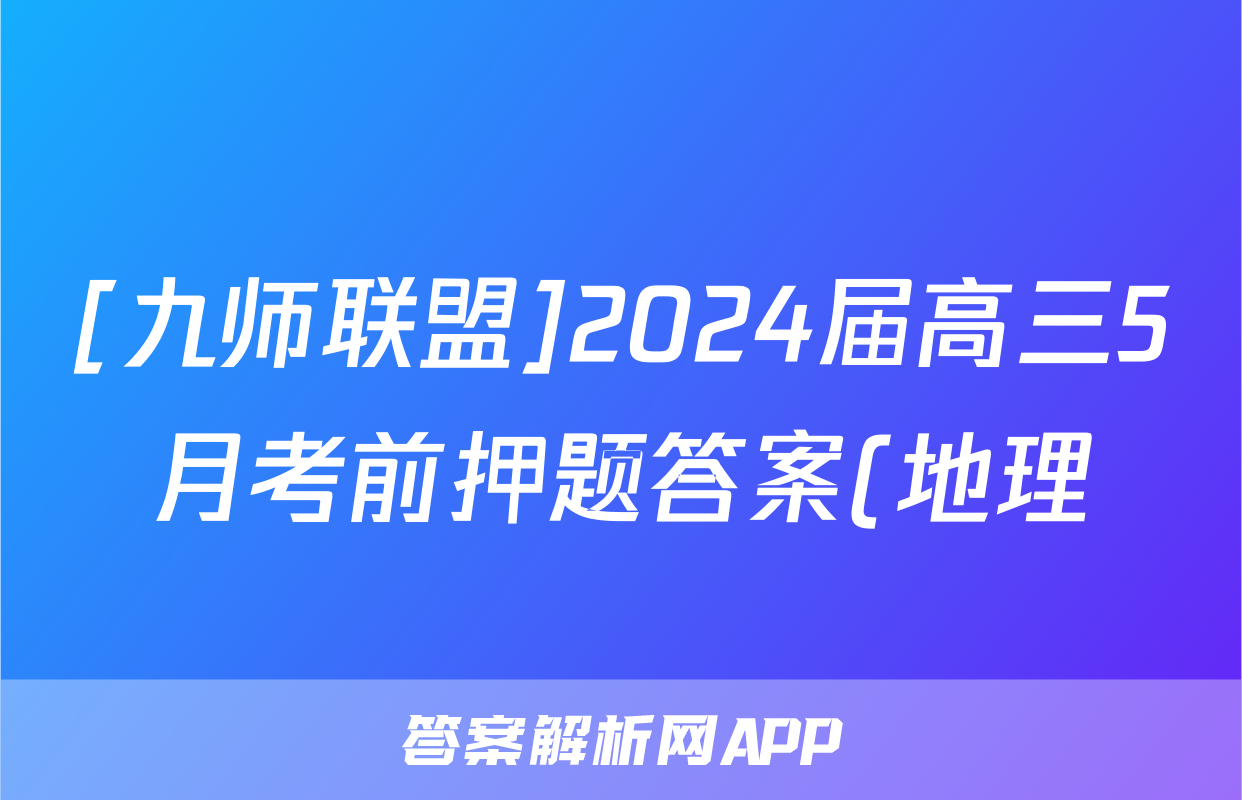 [九师联盟]2024届高三5月考前押题答案(地理)正在持续更新,目前2024届周测卷答案网为大家整理了相关试题及答案,供大家查缺补漏,高效提升成绩。