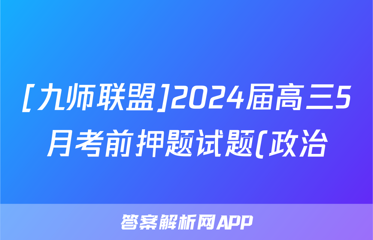 [九师联盟]2024届高三5月考前押题试题(政治)正在持续更新,目前2024届周测卷答案网为大家整理了相关试题及答案,供大家查缺补漏,高效提升成绩。