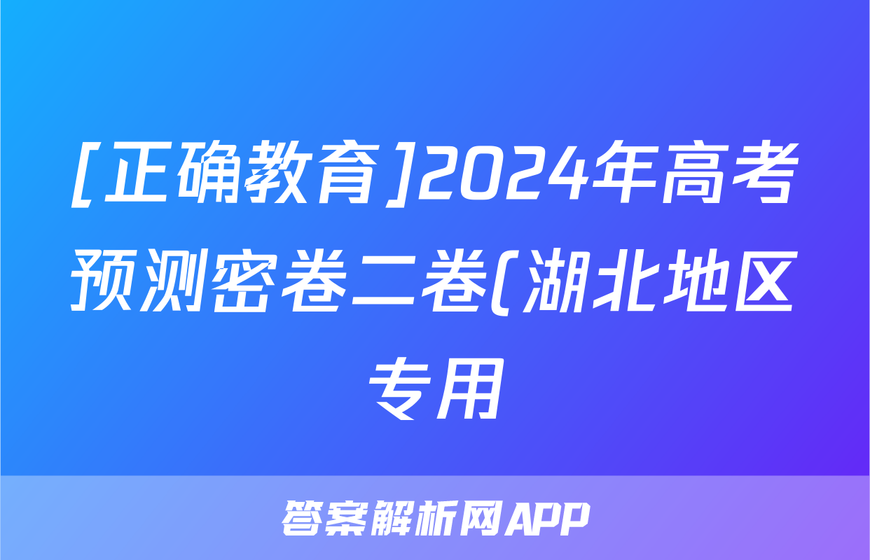 [正确教育]2024年高考预测密卷二卷(湖北地区专用)政治(湖北)试题正在持续更新,目前2024届周测卷答案网为大家整理了相关试题及答案,供大家查缺补漏,高效提升成绩。