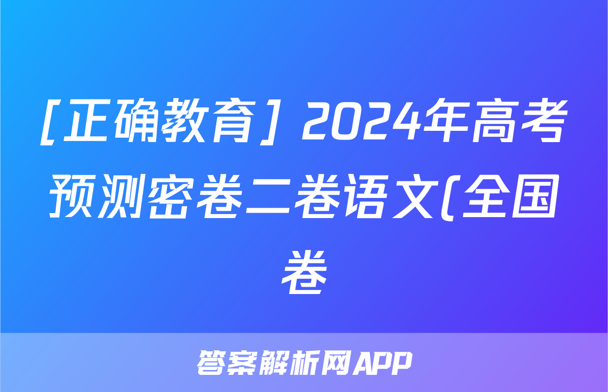 [正确教育] 2024年高考预测密卷二卷语文(全国卷)试题正在持续更新,目前2024届周测卷答案网为大家整理了相关试题及答案,供大家查缺补漏,高效提升成绩。