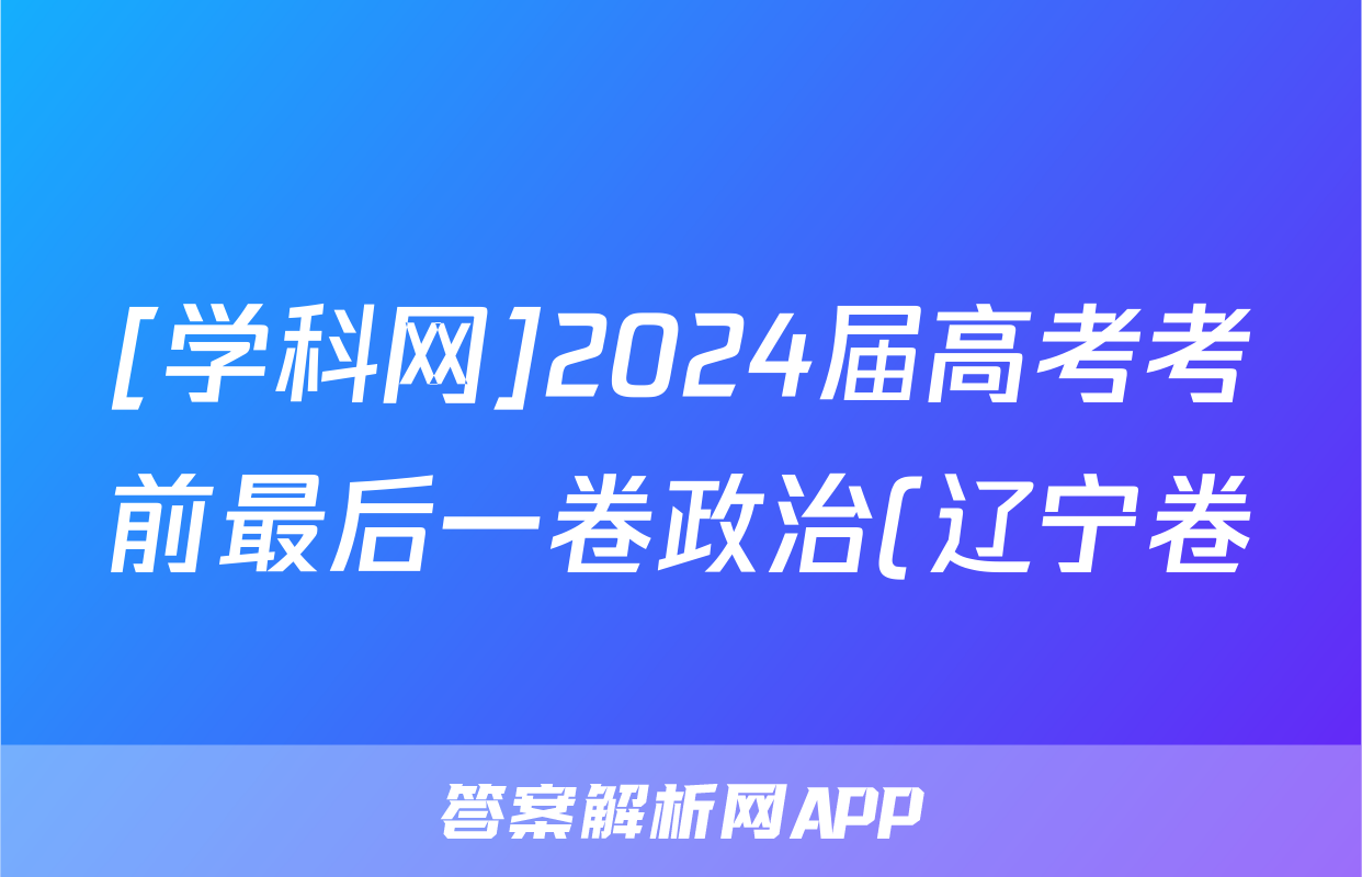 [学科网]2024届高考考前最后一卷政治(辽宁卷)试题正在持续更新,目前2024届周测卷答案网为大家整理了相关试题及答案,供大家查缺补漏,高效提升成绩。