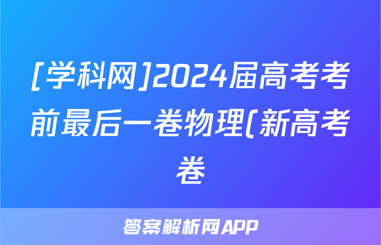 [学科网]2024届高考考前最后一卷物理(新高考卷)(新教材)试题正在持续更新,目前2024届周测卷答案网为大家整理了相关试题及答案,供大家查缺补漏,高效提升成绩。