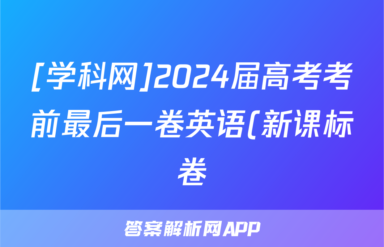 [学科网]2024届高考考前最后一卷英语(新课标卷)试题正在持续更新,目前2024届周测卷答案网为大家整理了相关试题及答案,供大家查缺补漏,高效提升成绩。