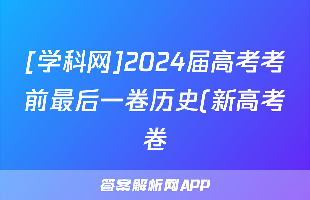 [学科网]2024届高考考前最后一卷历史(新高考卷)(新教材)答案正在持续更新,目前2024届周测卷答案网为大家整理了相关试题及答案,供大家查缺补漏,高效提升成绩。