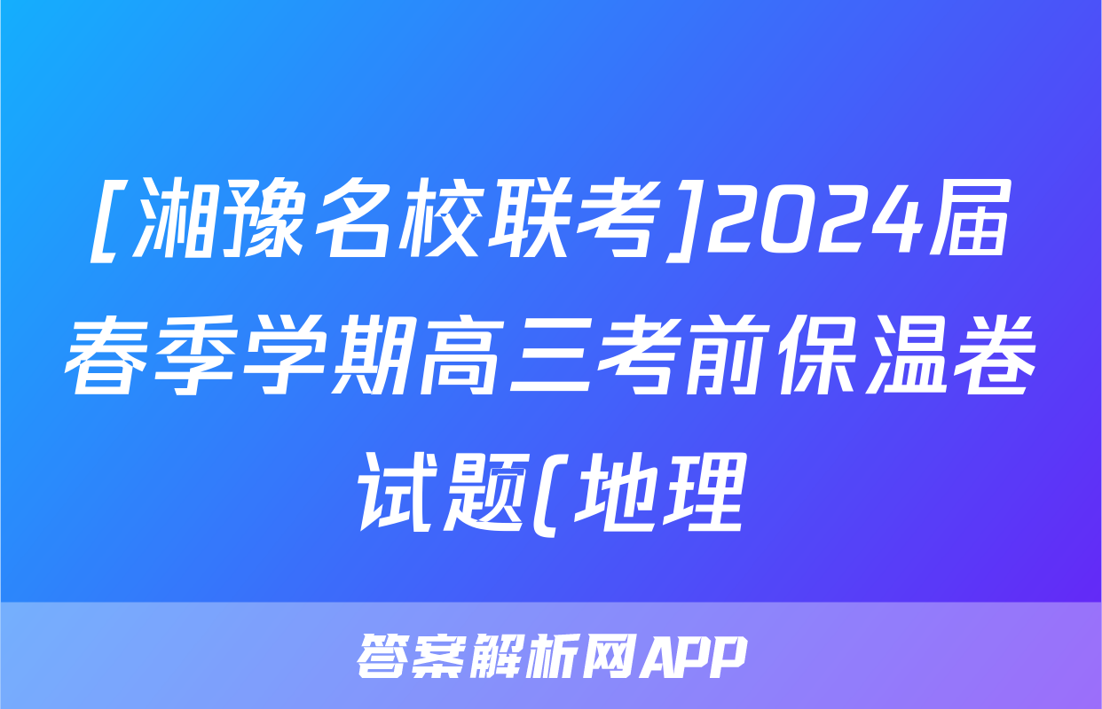 [湘豫名校联考]2024届春季学期高三考前保温卷试题(地理)正在持续更新,目前2024届周测卷答案网为大家整理了相关试题及答案,供大家查缺补漏,高效提升成绩。