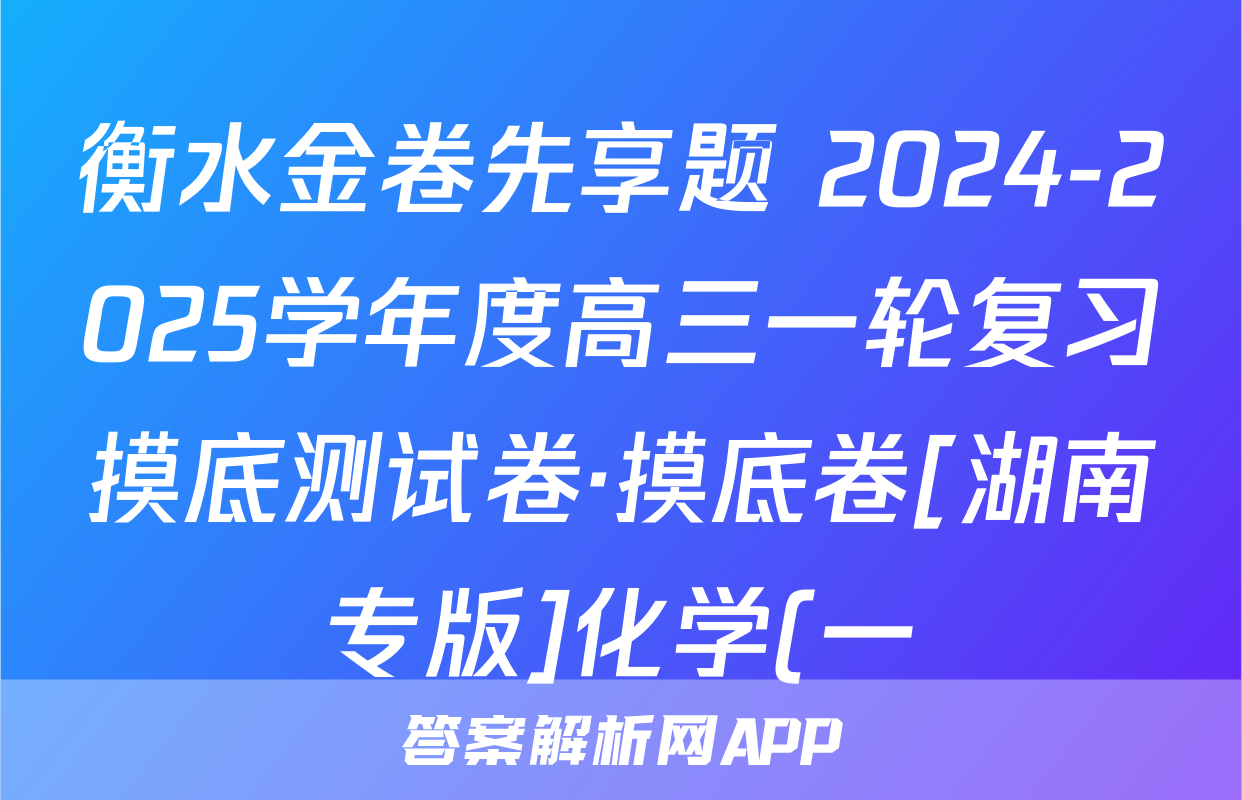 衡水金卷先享题 2024-2025学年度高三一轮复习摸底测试卷·摸底卷[湖南专版]化学(一)1试题正在持续更新,目前2024届周测卷答案网为大家整理了相关试题及答案,供大家查缺补漏,高效提升成绩。
