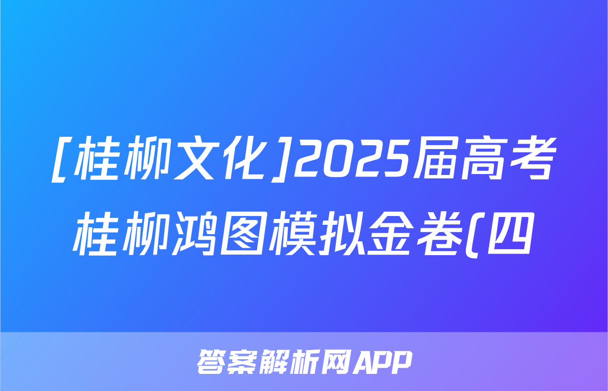 [桂柳文化]2025届高考桂柳鸿图模拟金卷(四)4地理试题正在持续更新,目前2024届周测卷答案网为大家整理了相关试题及答案,供大家查缺补漏,高效提升成绩。