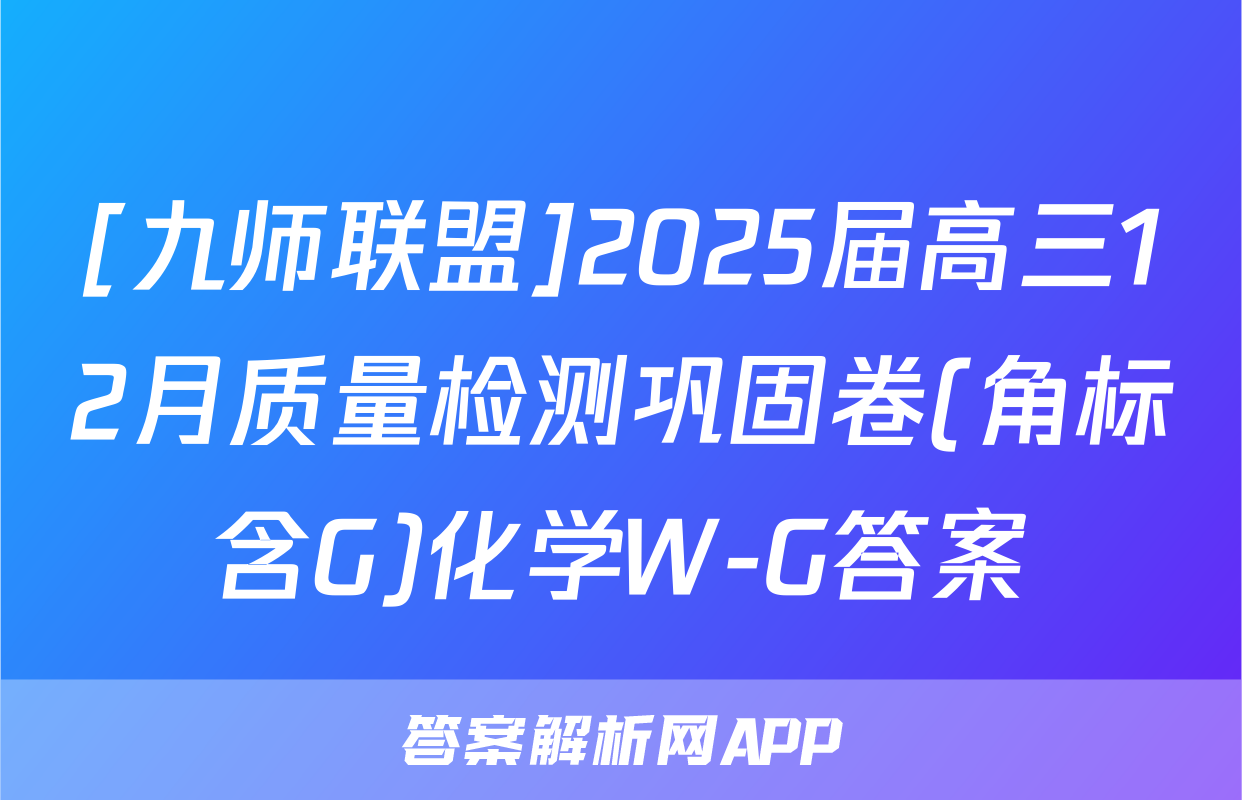 [九师联盟]2025届高三12月质量检测巩固卷(角标含G)化学W-G答案